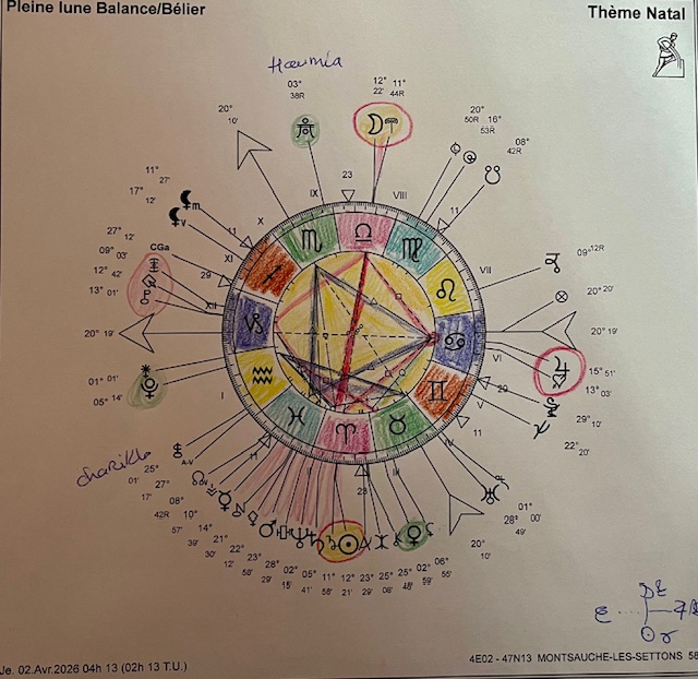 Quelle récolte accueillons-nous ce jeudi 2 avril 2026 là où se pose l’axe 12°21Balance/Bélier, cette moisson de la nouvelle lune du 19 mars à 29ème Poissons ?